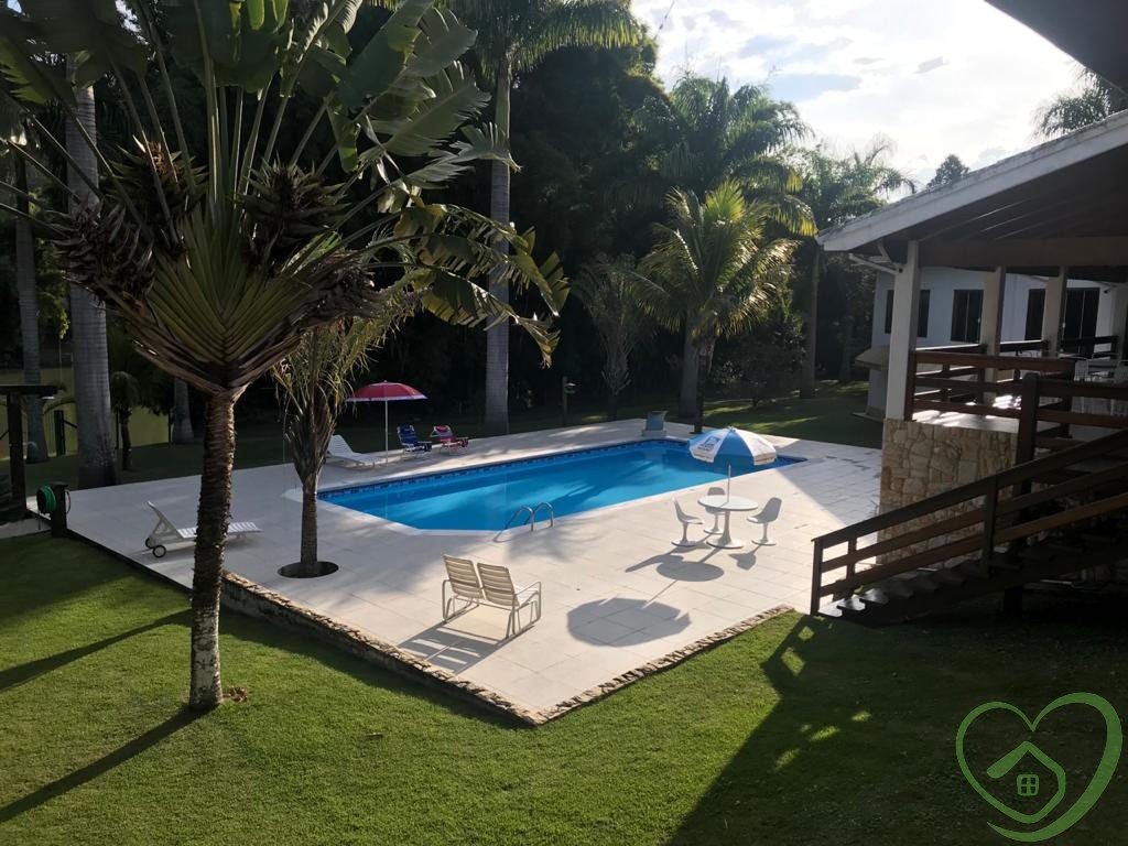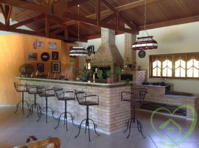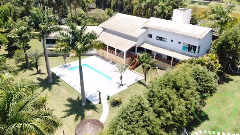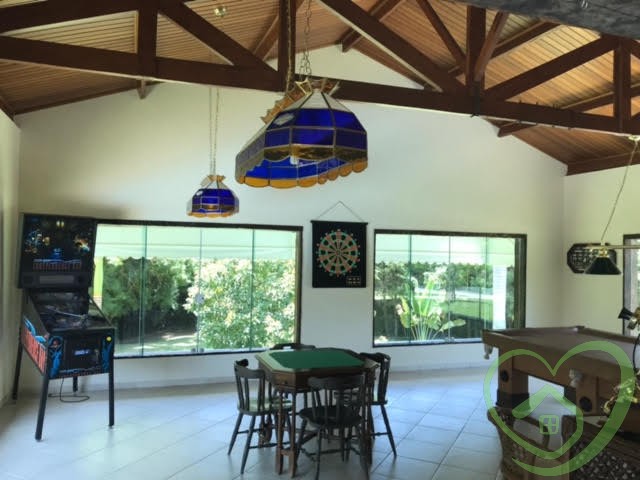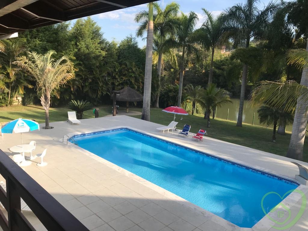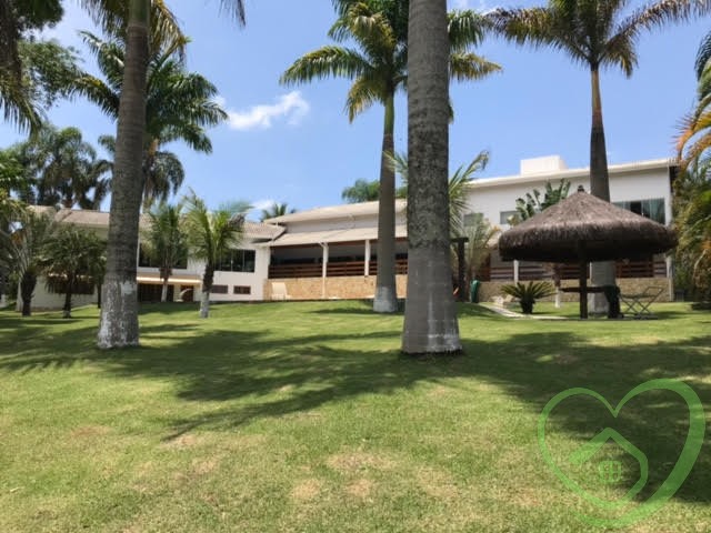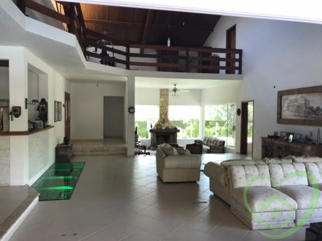 Majestosa residência em condomínio, com 04 suítes, sendo 02 suítes master com closet, todos os banheiros das suítes com box blindex verde e aquecedores individuais com controle remoto, terraço em todos os ambientes, sala de lareira, sala de jantar, sala de estar, lavabo, mezanino com sala de ginástica e escritório, depósito, living para 03 ambientes com pé direito com 11 metros, bar com piso de vidro temperado, mezanino com sala de televisão, ampla sala envidraçada com vista panorâmica, cozinha com despensa, lavanderia, hall de entrada com lavabo, vestiário com espaço para instalação de sauna, área de churrasqueira integrada com salão de jogos 02 banheiros, piscina com ducha, deck e quiosque com 320m², garagem para quatro carros, espaço para vários outros veículos, casa cercada de muito verde, várias árvores frutíferas pelo vasto gramado, depósito, quarto de ferramentas.