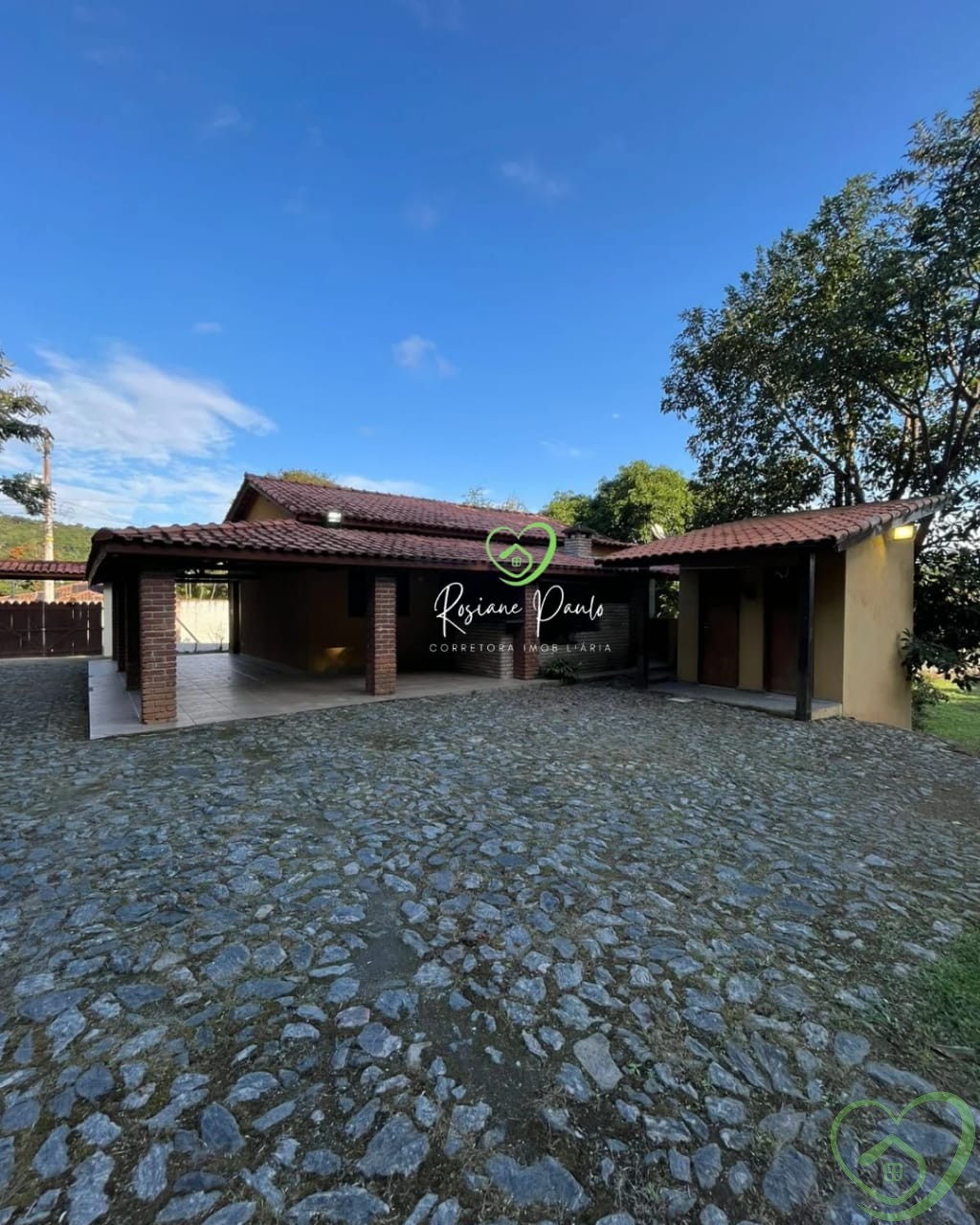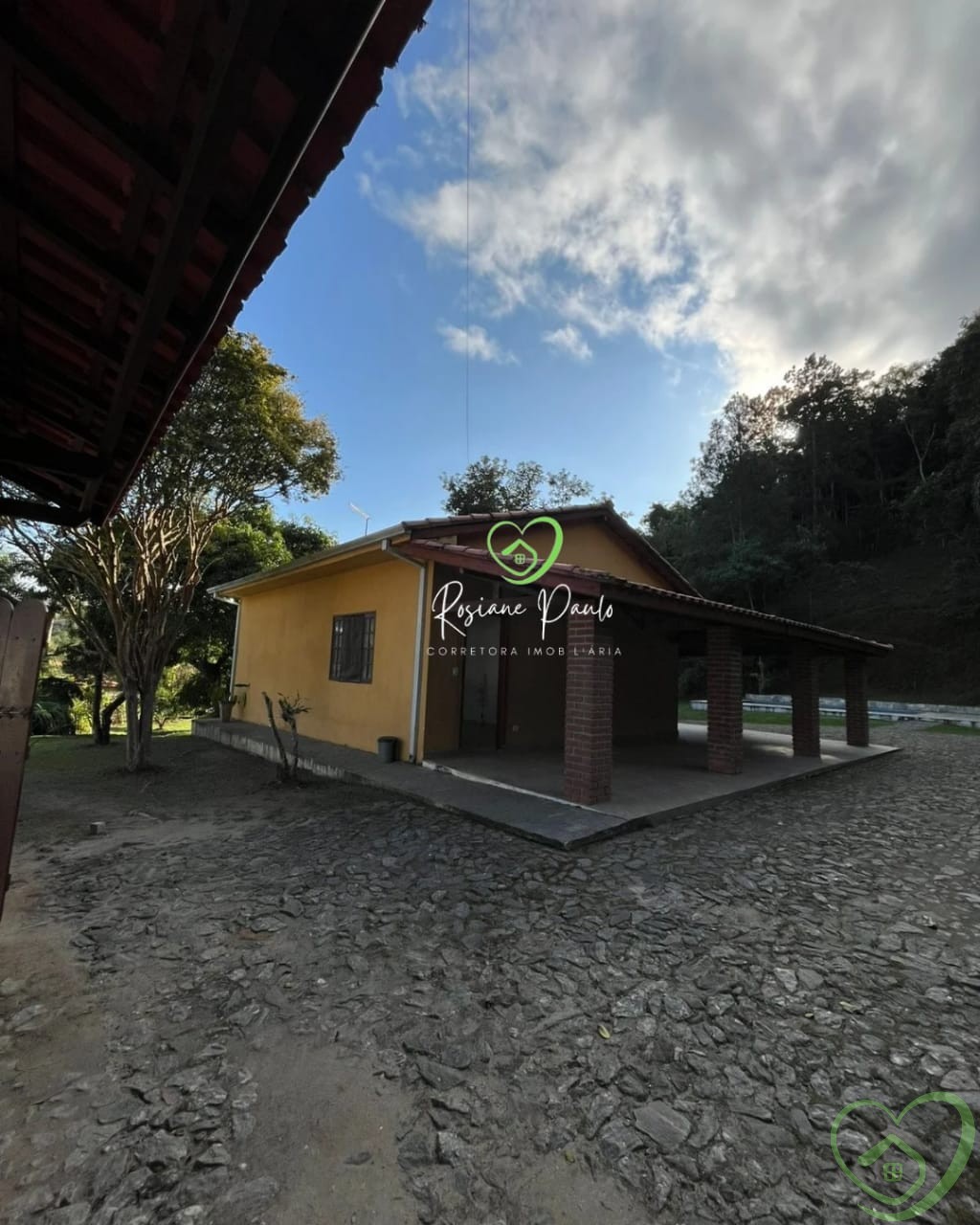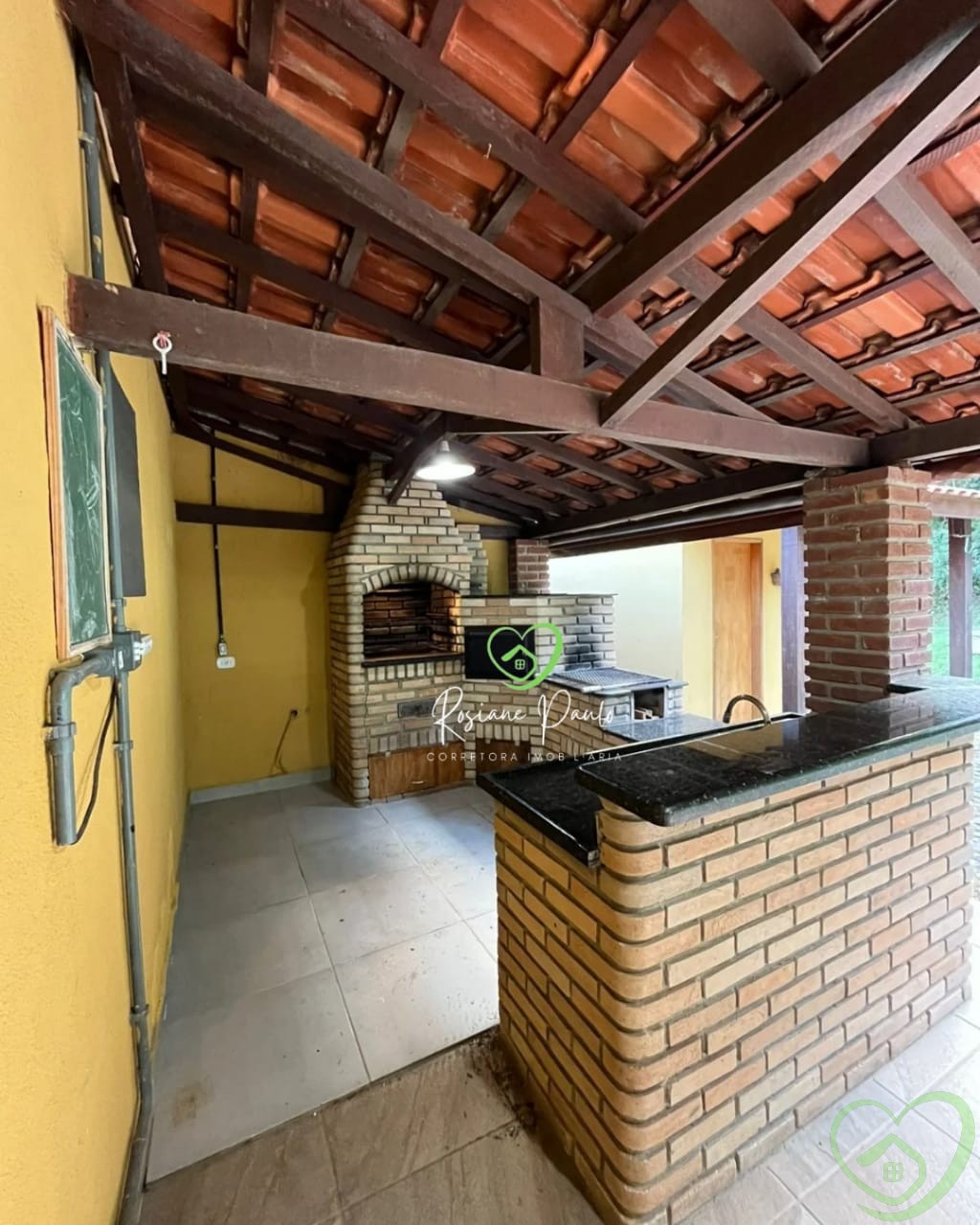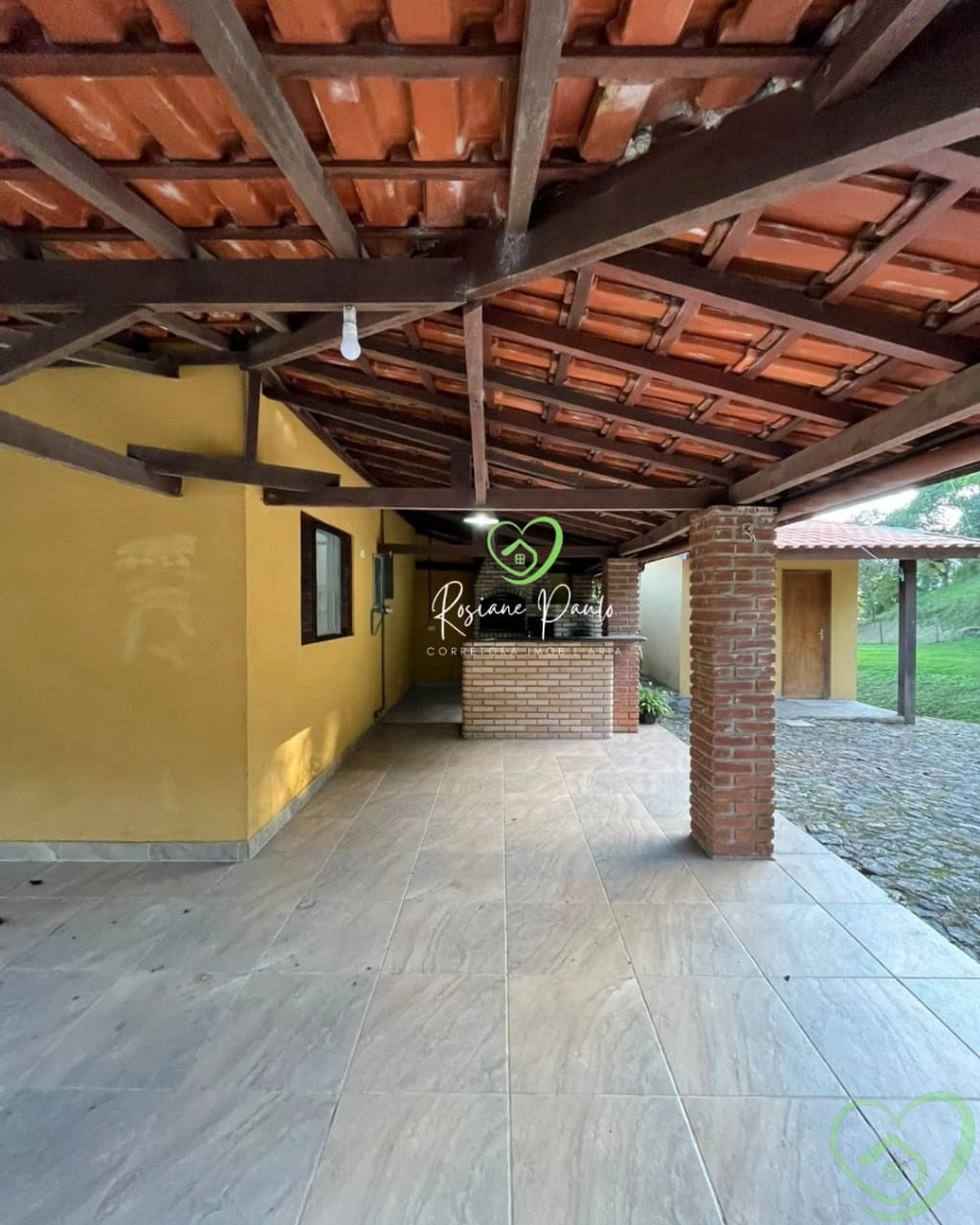 Casa térrea com 2 dormitórios, sendo 1 suíte, banheiro social, sala, cozinha, casa toda avarandada, área gourmet com churrasqueira, fogão a lenha, 2 banheiros externos, piscina, muito espaço gramado para aproveitar.